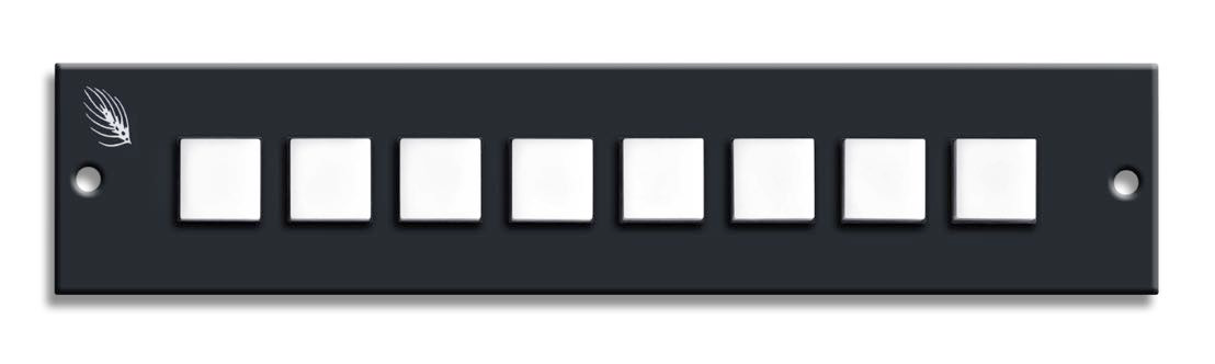 8 programmable button panel that communicates with the network system via TCP/IP protocol. Ships with script builder application for creating custom switching commands. Create conditional switching for cross point control, talkback functions, offer/accept style studio switching, etc. Engraved switch caps optional.